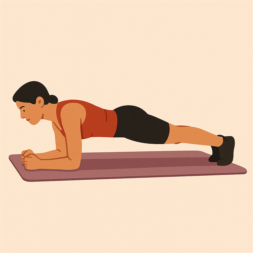 방법: 팔꿈치와 발끝을 바닥에 대고 몸을 일직선으로 유지합니다. 30초에서 시작하여 점차 1분 이상 유지해보세요. 허리가 꺾이지 않도록 주의해야 합니다.